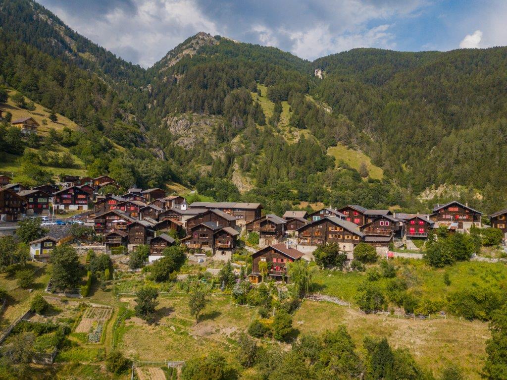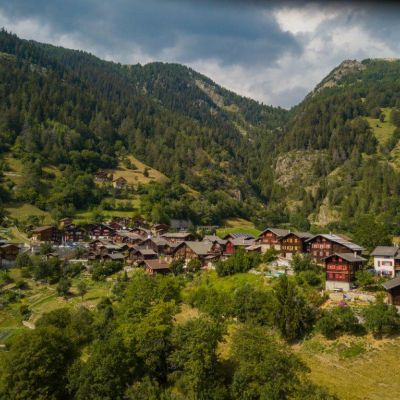 Das Ferienhaus Feschel befindet sich im rechten Hausteil (helle Fensterläden) auf 1280 m ü.M. Es umfasst 170 m2 und verfügt über drei Schlafzimmer, zwei neue Bäder, allen Komfort und einen herzlichen Charme. Das Bergdorf Feschel befindet sich im Herzen des Wallis, oberhalb von Leuk.
